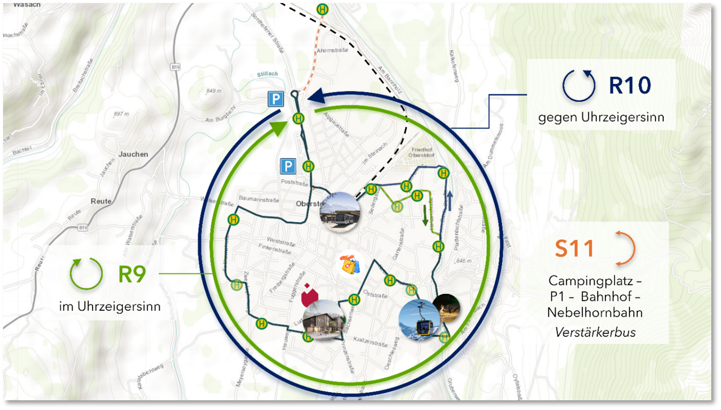 Durch die neue Verbindung zwischen unterem und oberem Markt wird eine wichtige Lücke im ÖPNV-Netz geschlossen. Mit Start/Endpunkt P1 werden alle wichtigen Aktivitäten im Ort erschlossen. Zusätzlich wurden durch die Verknüpfung und den Ausbau die Taktfrequenzen des Spätbusses mehr als verdoppelt und damit ein deutlicher Mehrwert für die Ortsteile Rubi, Reichenbach, Schöllang und Tiefenbach geschaffen.