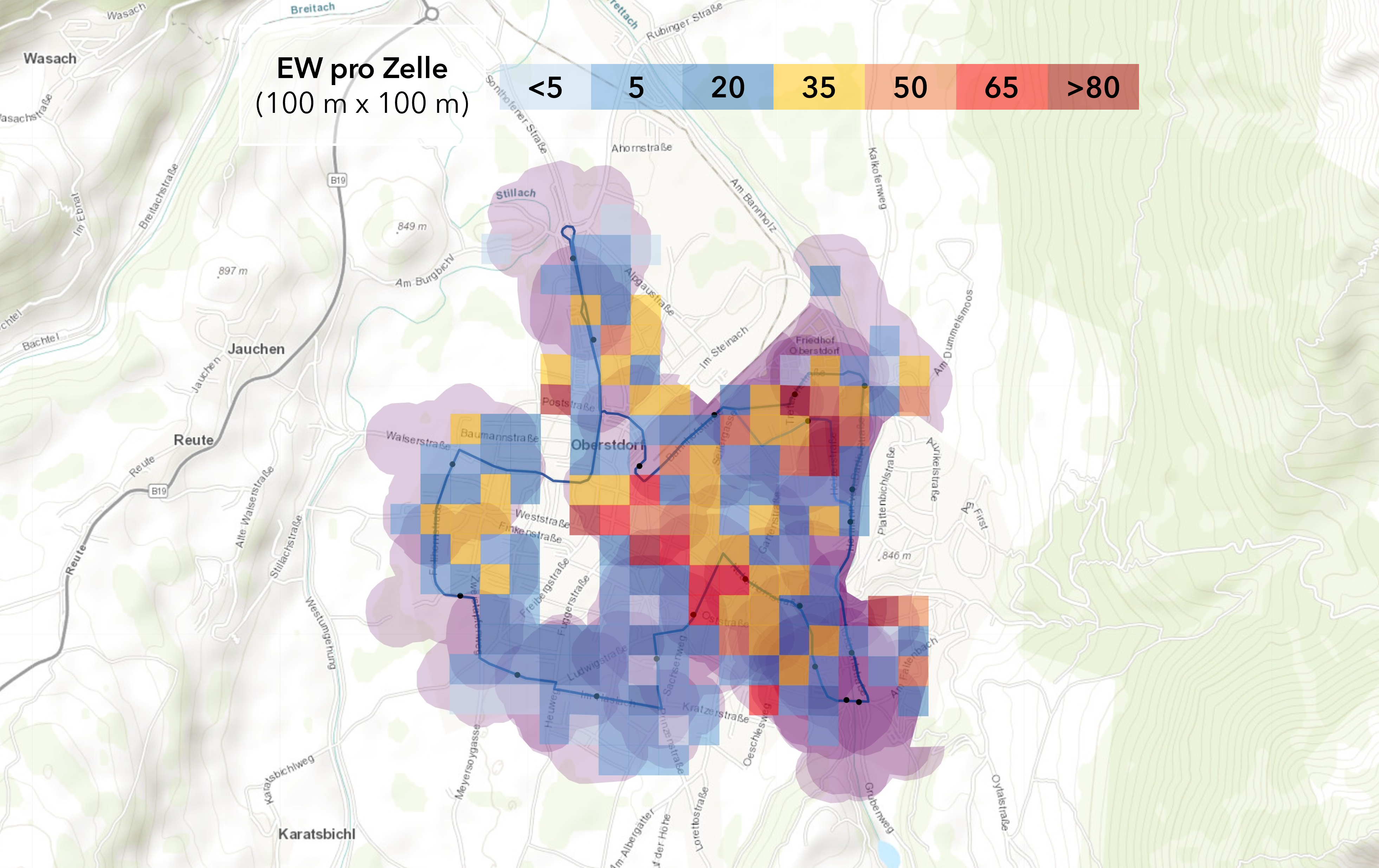 Durch das neue Ringbuskonzept in Oberstdorf wird eine signifikante Verbesserung der Anbindung innerhalb des Ortskerns erreicht. Künftig werden statt bisher 36 % der Einwohner nun 80 % der insgesamt 7.206 Einwohner an den Ortsbus angeschlossen. Das bedeutet, dass zukünftig 5.760 statt 2.586 Einwohner in den Genuss einer besseren Nahverkehrsanbindung kommen.