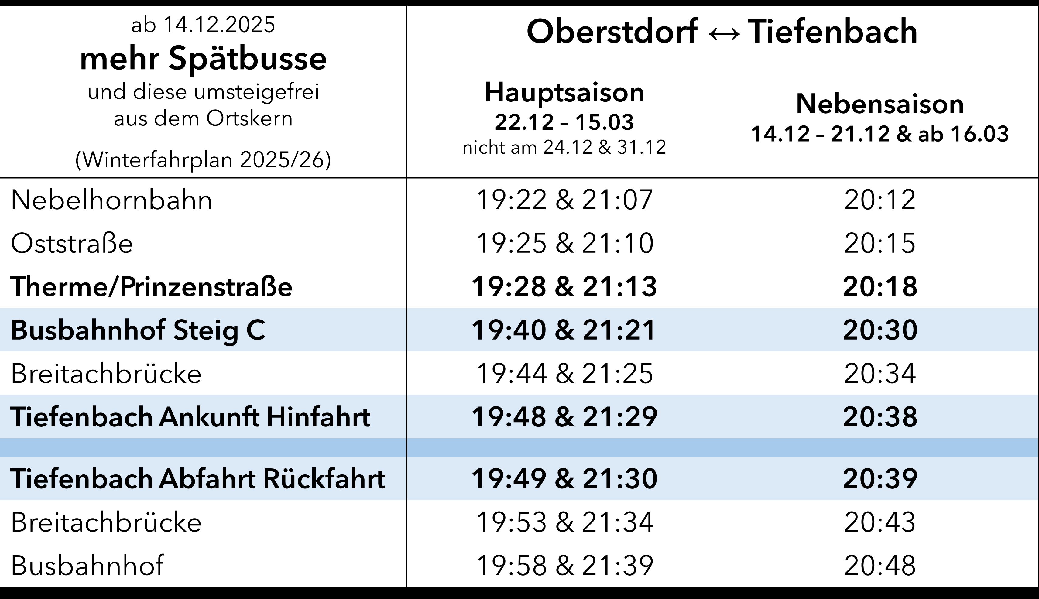 Fragen zum Betrieb des Ortsbusses richten Sie bitte an die Gemeindewerke Oberstdorf.